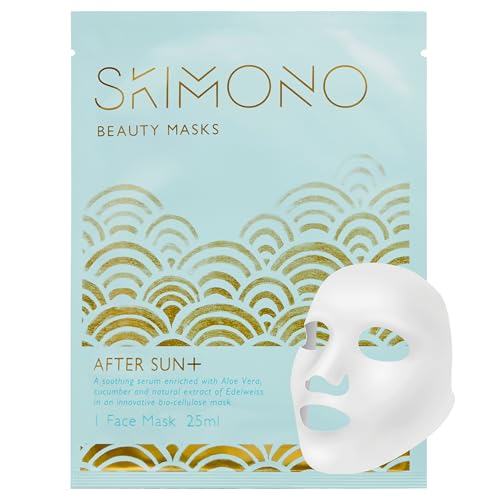 Skimono After Sun Moisturising Face Mask (1 Pack) Bio-Cellulose Cooling Face Mask with Aloe Vera, Hydrating Sheet Mask for Sun Recovery