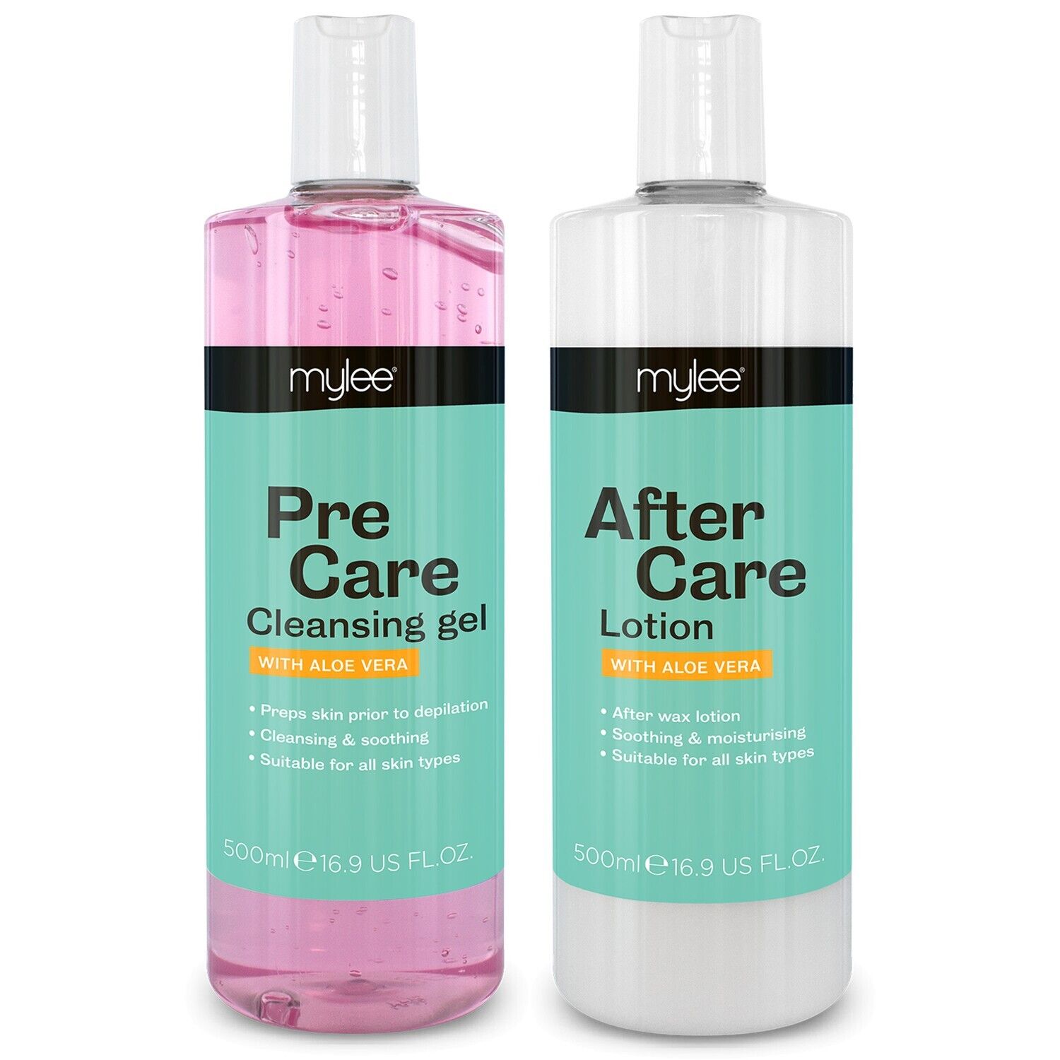 Mylee Pre & After Care Kit (2x500ml) Skin Cooler Cleansing Lotion & Post Depilatory Skin Soothing Moisturiser Calming Lotion, Enriched with Aloe Vera