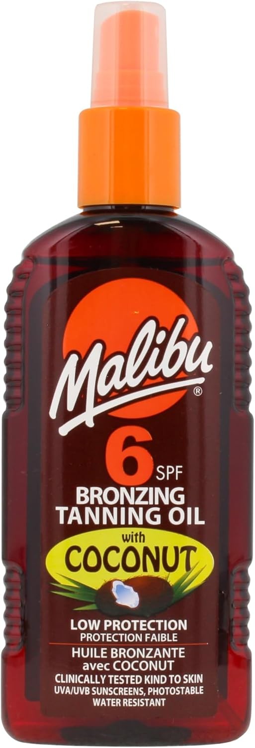 Malibu Sun SPF 6 Bronzing Tanning Oil With Coconut Oil, Low Protection, Water R