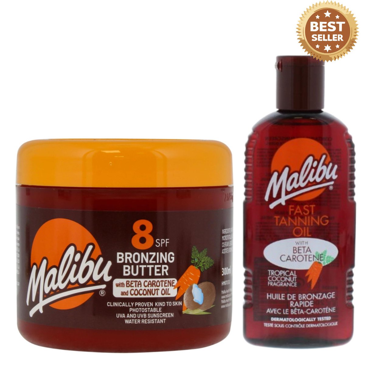 Malibu SPF 8 Bronzing Tanning Butter with Beta Carotene 300ML +Coconut Oil 100ML