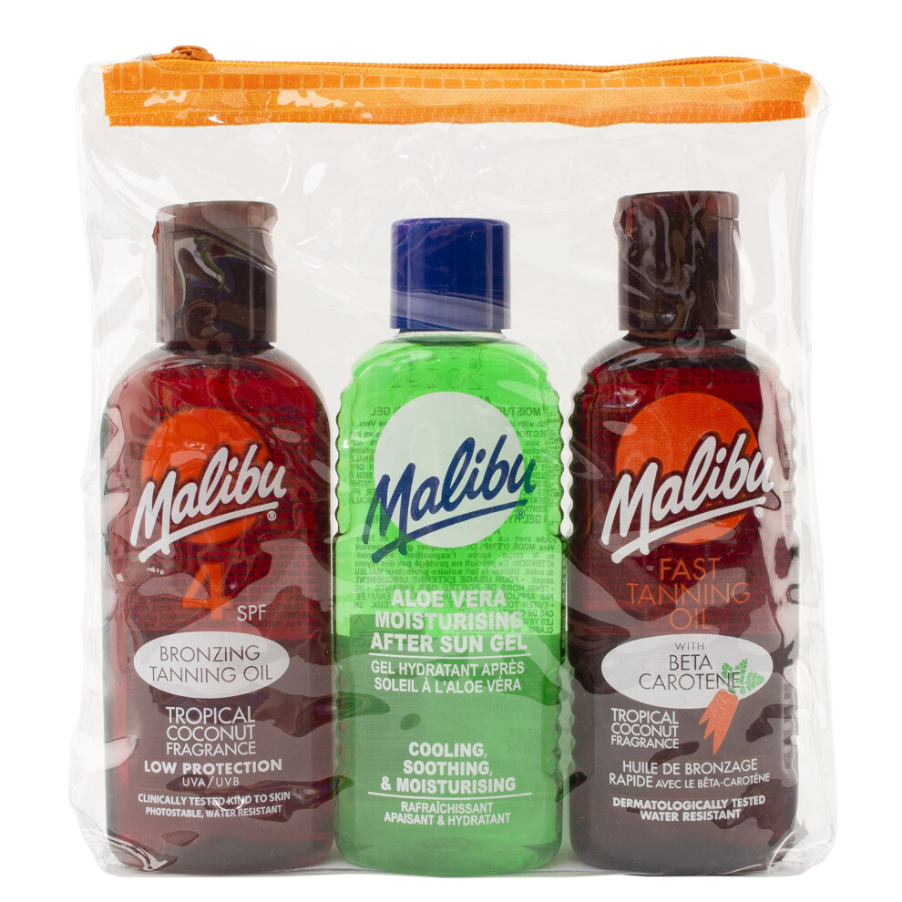 Malibu Sun Travel 3 Pack Dry Oil, After Sun Aloe Vera, Bronzing Tanning Oil