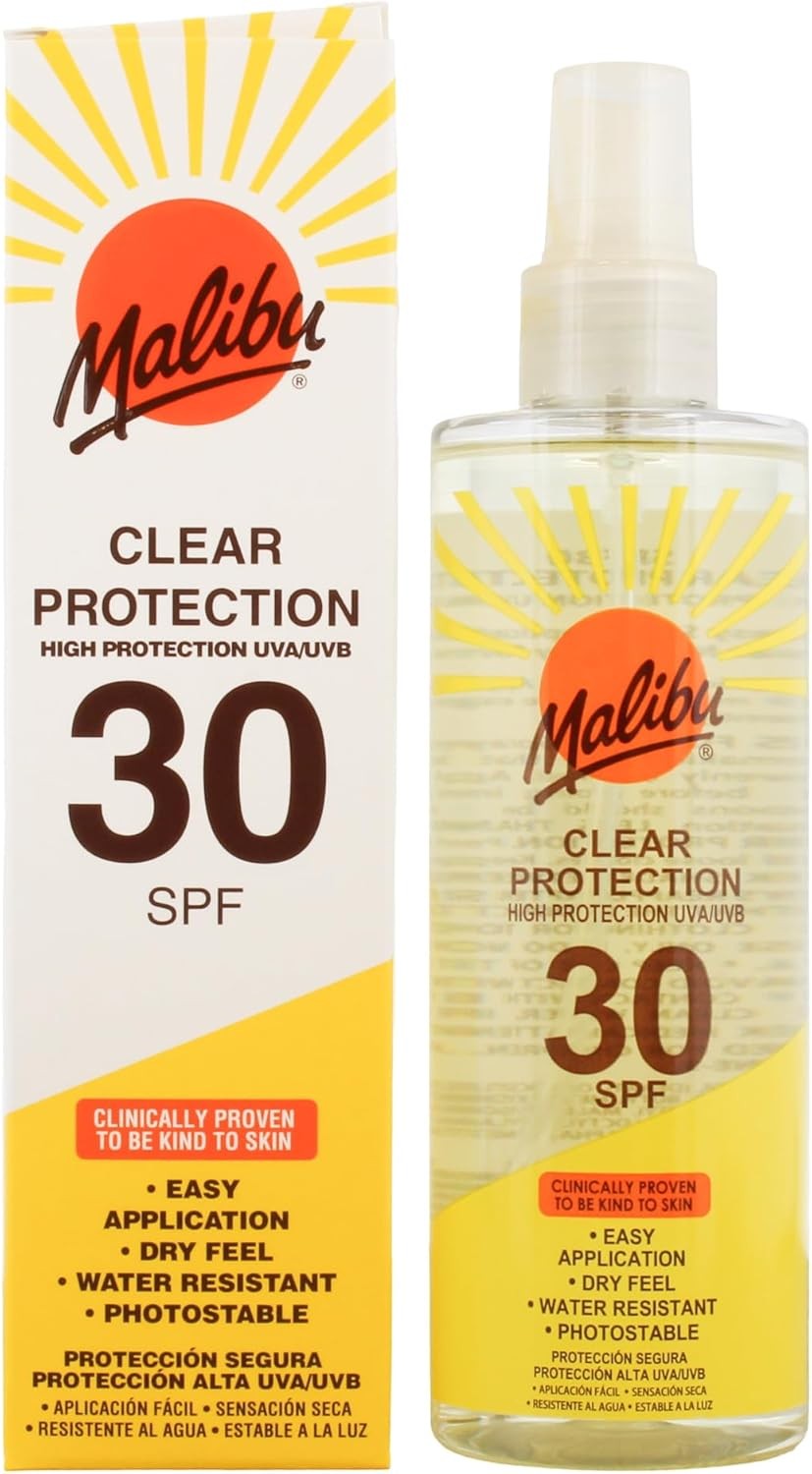 Malibu Sun SPF 50 Clear Spray Sunscreen, High Protection, Dry Feel, Water Resis
