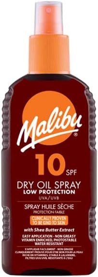 Malibu Dry Oil Spray, High Protection Sun Lotion Spray 200ml (SPF10)