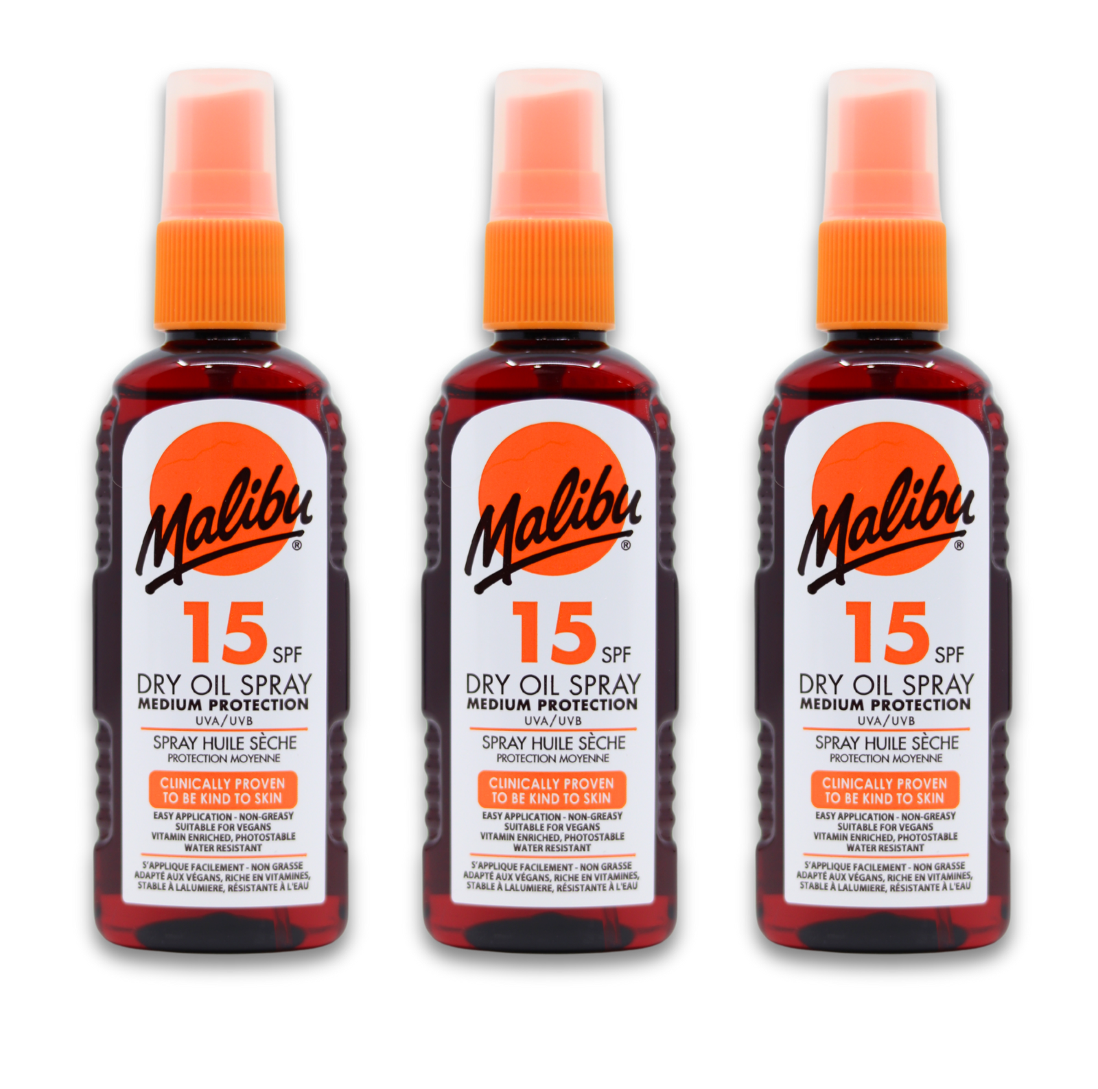 Malibu Dry Oil Spray SPF15 100ml | Sunscreen Protection | Travel Size X 3