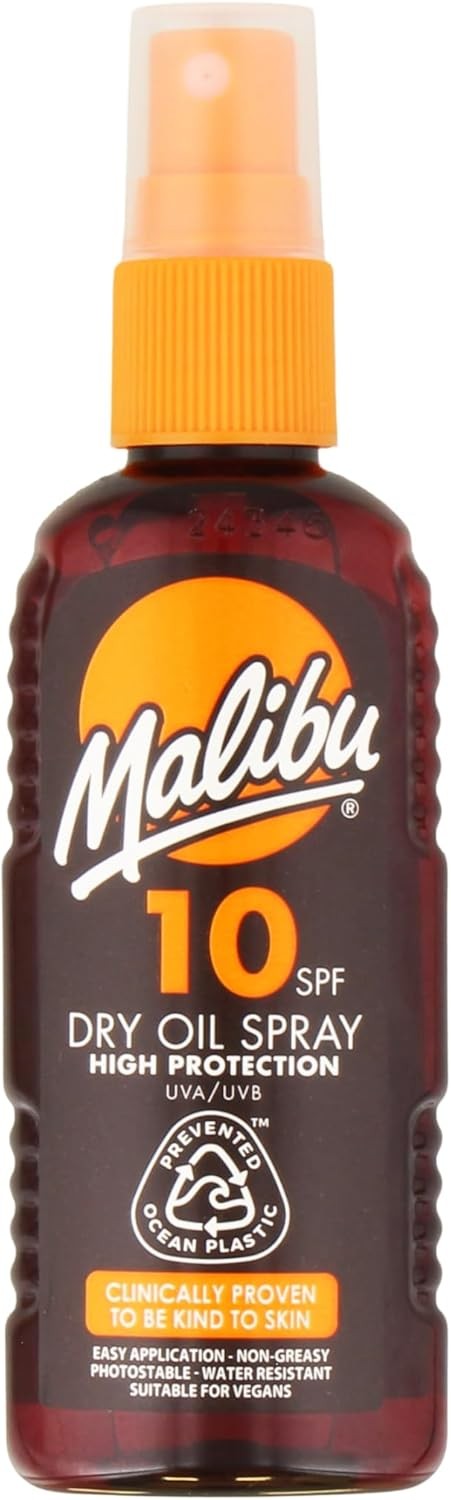 Malibu Dry Oil Spray SPF10 100ml | Sunblock | Beach Essentials | Skincare X 3