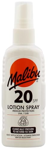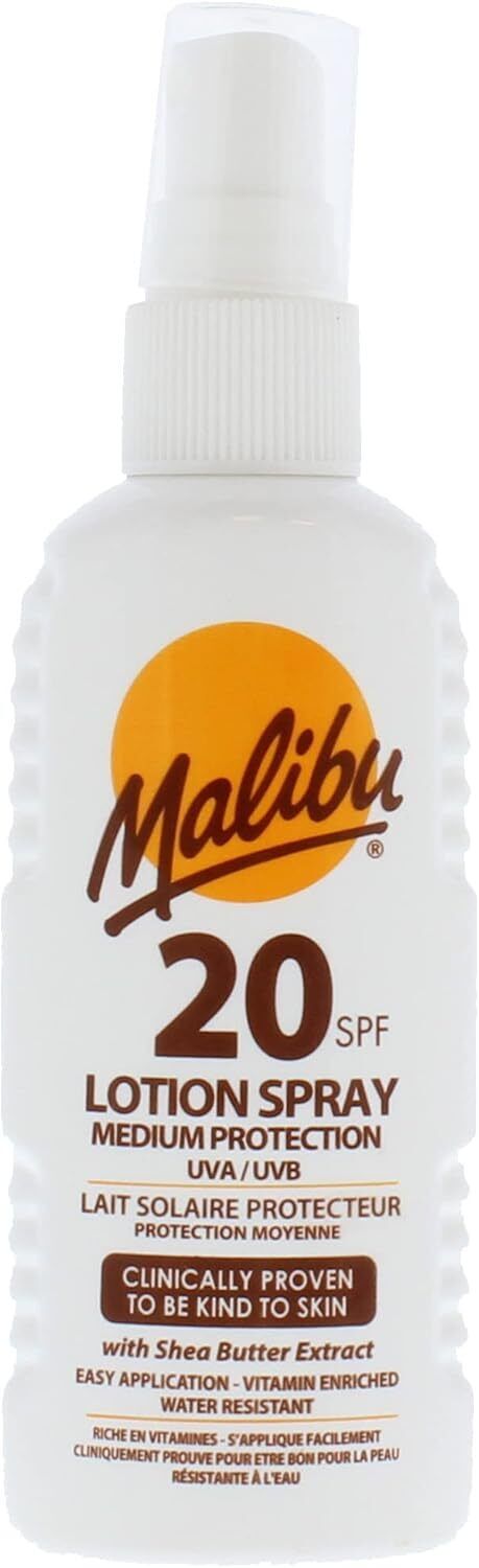 Malibu Sun SPF 20 Lotion Spray, Medium Protection Sun Cream, Water Resistant, Vitamin Enriched, with Shea Butter Extract, 100ml