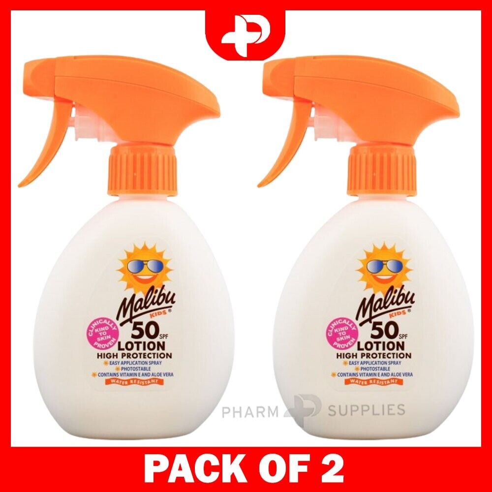 Malibu Lotion Kids Aloe Vera & Vitamin E Trigger Spray SPF 50 300ml 2 Packs