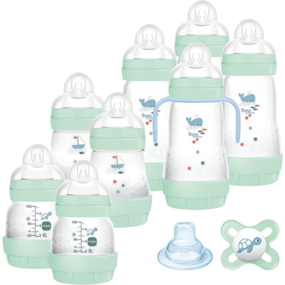 Mam Easy Start Anti-Colic Baby Bottle, 8 Bottles in 130 ml, 160 ml and 260 ml Sizes, 1 Start Nano, 4 Sealant Discs, 1 Extra Soft Grip Spout, Assorted