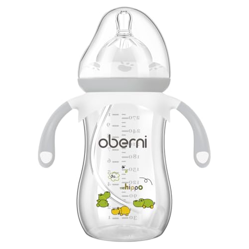 Oberni Weighted Baby Bottles with Size 4 Fast Flow Breast-Like Teat for 12 Months Plus / 1 Year Old Newborn Babies, 270ml/9oz, Non-Slip Handles, Anti-Colic, Grey/1 Pack