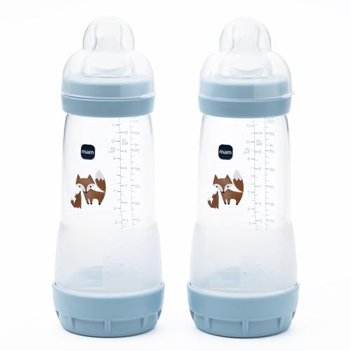 MAM Easy Start Anti-Colic Baby Bottles | 2 Pack (2 x 320ml) | Self-Sterlising | Fast Flow MAM Teats Size 3 | Baby Accessories | Powder Blue (Various Designs)