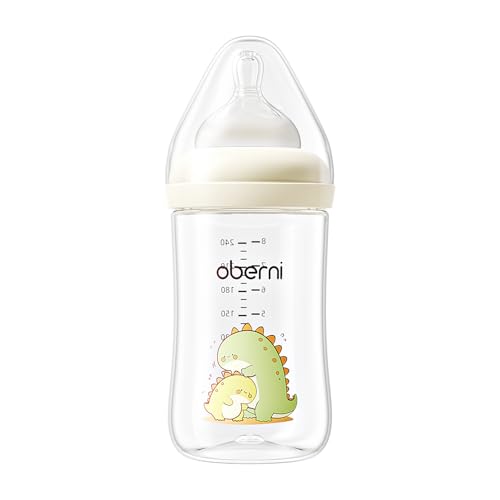 Oberni Anti-Colic Baby Bottles, 240ml / 8oz Newborn Bottle with Size 2" Medium Flow Breast Like Silicone Teat, 3M+ Breastfed and Milk Feeding, Beige/Pack of 1