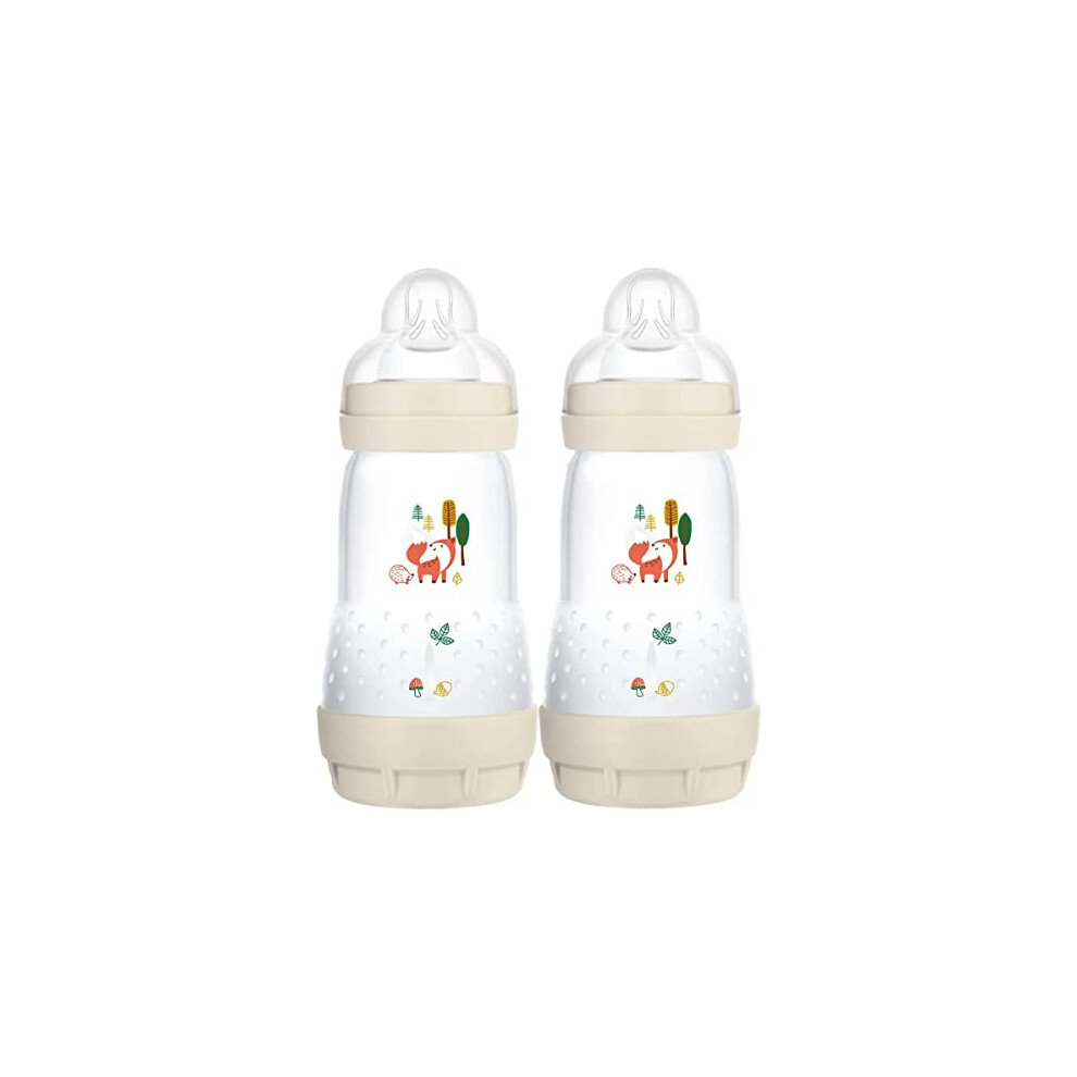 MAM Easy Start Anti-Colic Baby Bottles | 2 Pack (2 x 260ml) | Self-Sterilising Baby Milk Bottle | Medium Flow MAM Teat Size 2 | Newborn Essentials | Linen (Various Designs)