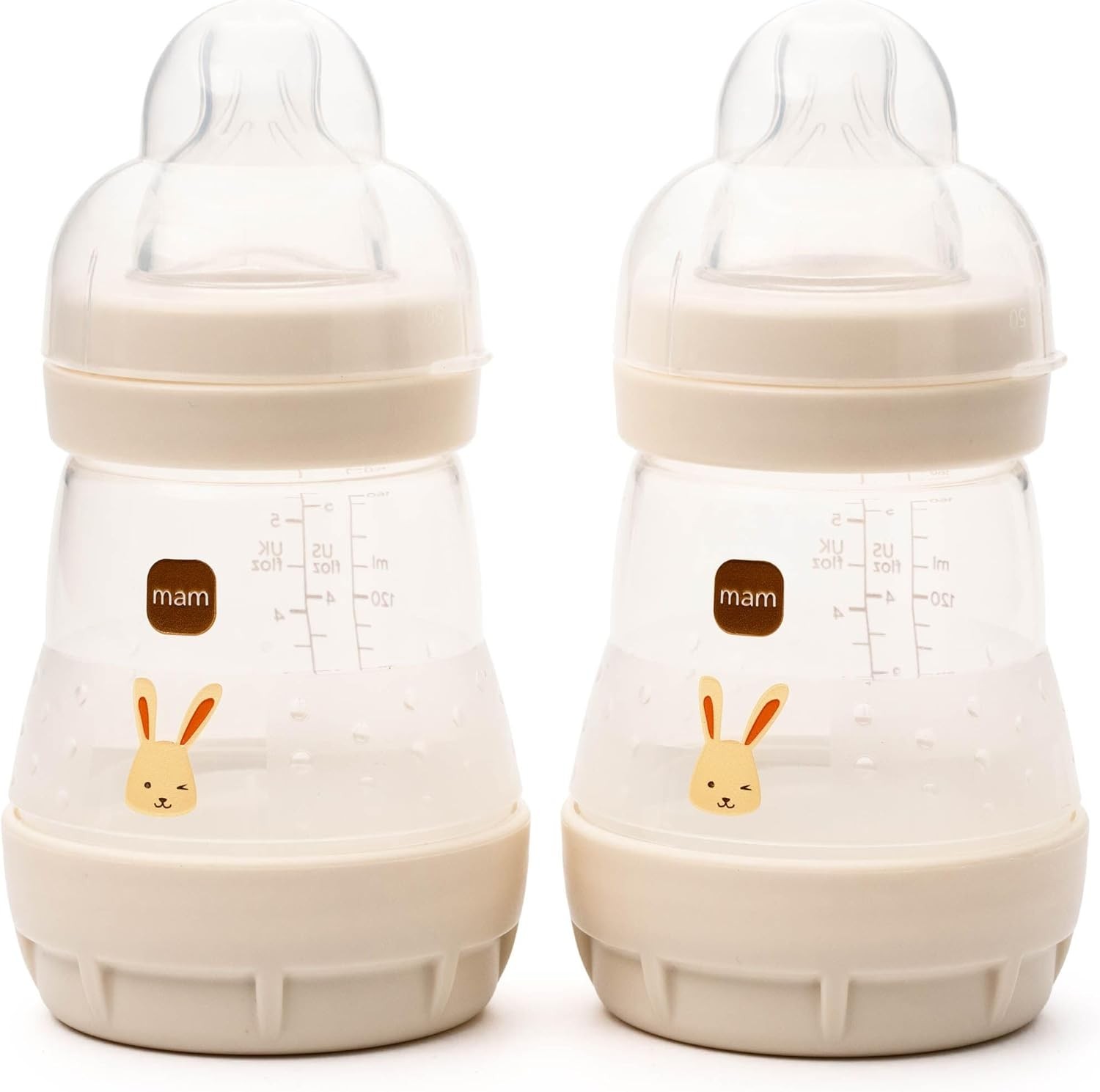 MAM Easy Start Anti-Colic Baby Bottles | 2 Pack (2 x 160ml) | Self-Sterilising Baby Milk Bottle | Slow Flow MAM Teats Size 1 | Newborn Essentials | Shell (Various Designs) | Light Nude Pink