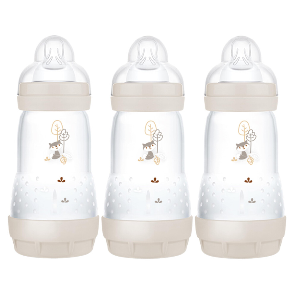 MAM Easy Start Anti-Colic Baby Bottles | 3 Pack (3 x 160ml) | Self-Sterilising Baby Milk Bottle | Slow Flow MAM Teats Size 1 | Newborn Essentials | Beige (Various Designs)