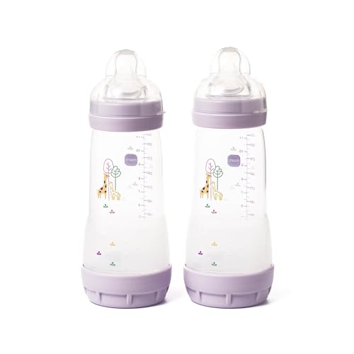 MAM Easy Start Anti-Colic Baby Bottles | 2 Pack (2 x 320ml) | Self-Sterlising | Fast Flow MAM Teats Size 3 | Baby Accessories | Iris (Various Designs)