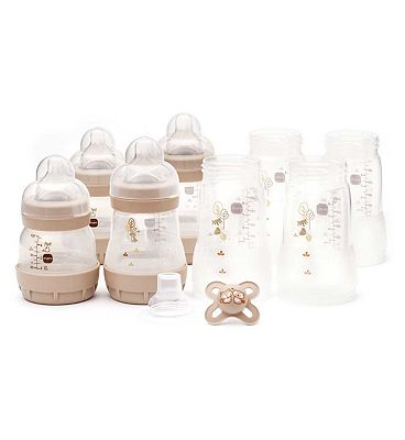 Mam Bottle Set, 8 Bottles in 130 Ml, 160 Ml and 260 Ml Sizes, 1 Start Nanò Pacifier, 4 Diskettes, 1 Soft Spout and Handles, Color Beige - 730 G, 14.2 x 16.8 x 21.2 cm; 720 grams