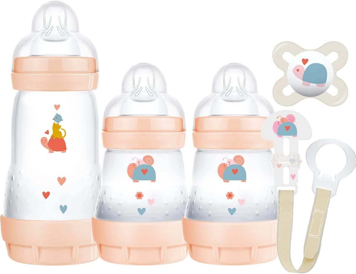 MAM Easy Start Self Sterilising Anti Colic Starter Set, Newborn Bottle Set and Soother, Newborn Essentials, Pink (Designs May Vary)