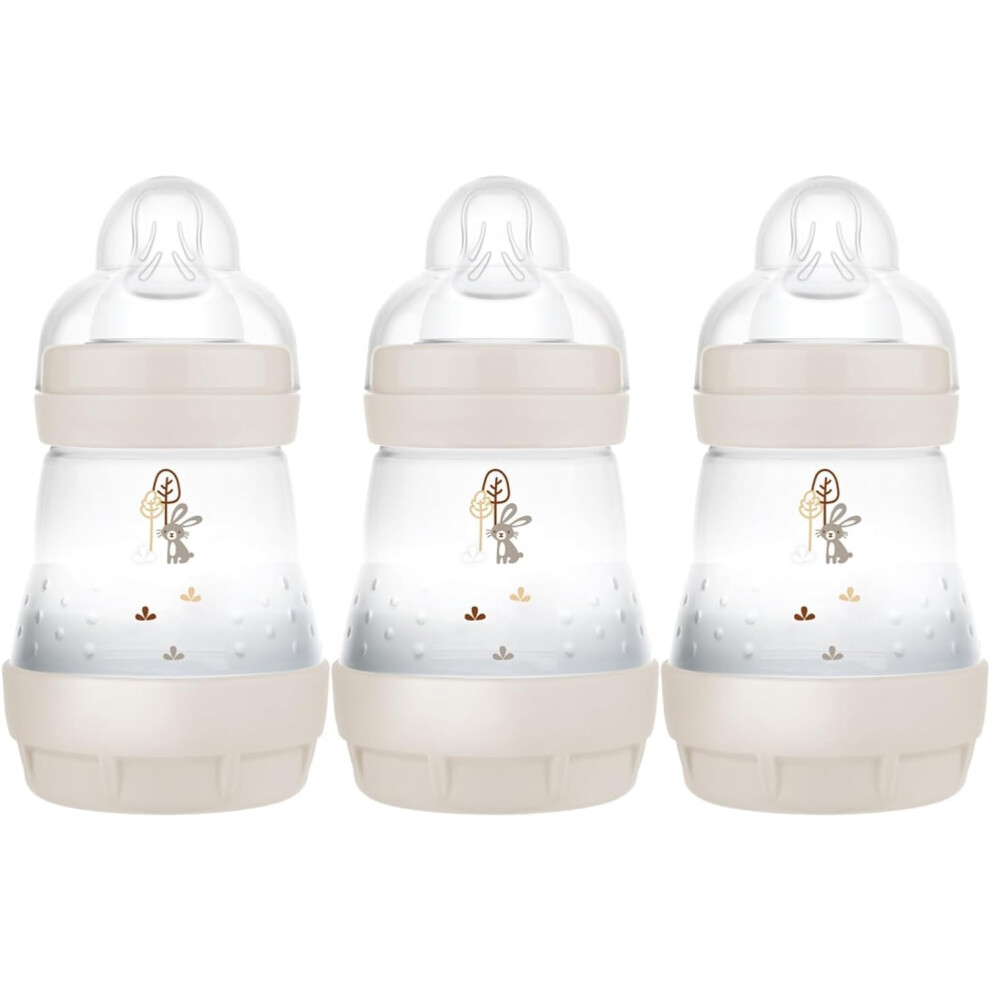 MAM Easy Start Self Sterilising Anti-Colic Baby Bottle 3 Pack (3 x160 ml) with Slow Flow MAM Teats Size 1, Newborn Essentials, Beige (Designs May Vary