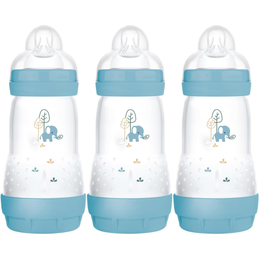 MAM Easy Start Self Sterilising Anti-Colic Baby Bottle 3 Pack 160 ml with Slow Flow MAM Teats Newborn Essentials Blue (Designs May Vary)