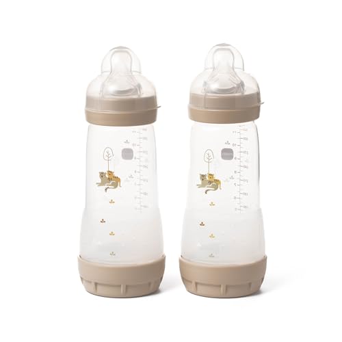 MAM Easy Start Anti-Colic Baby Bottles | 2 Pack (2 x 320ml) | Self-Sterlising | Fast Flow MAM Teats Size 3 | Baby Accessories | Cream (Various Designs)