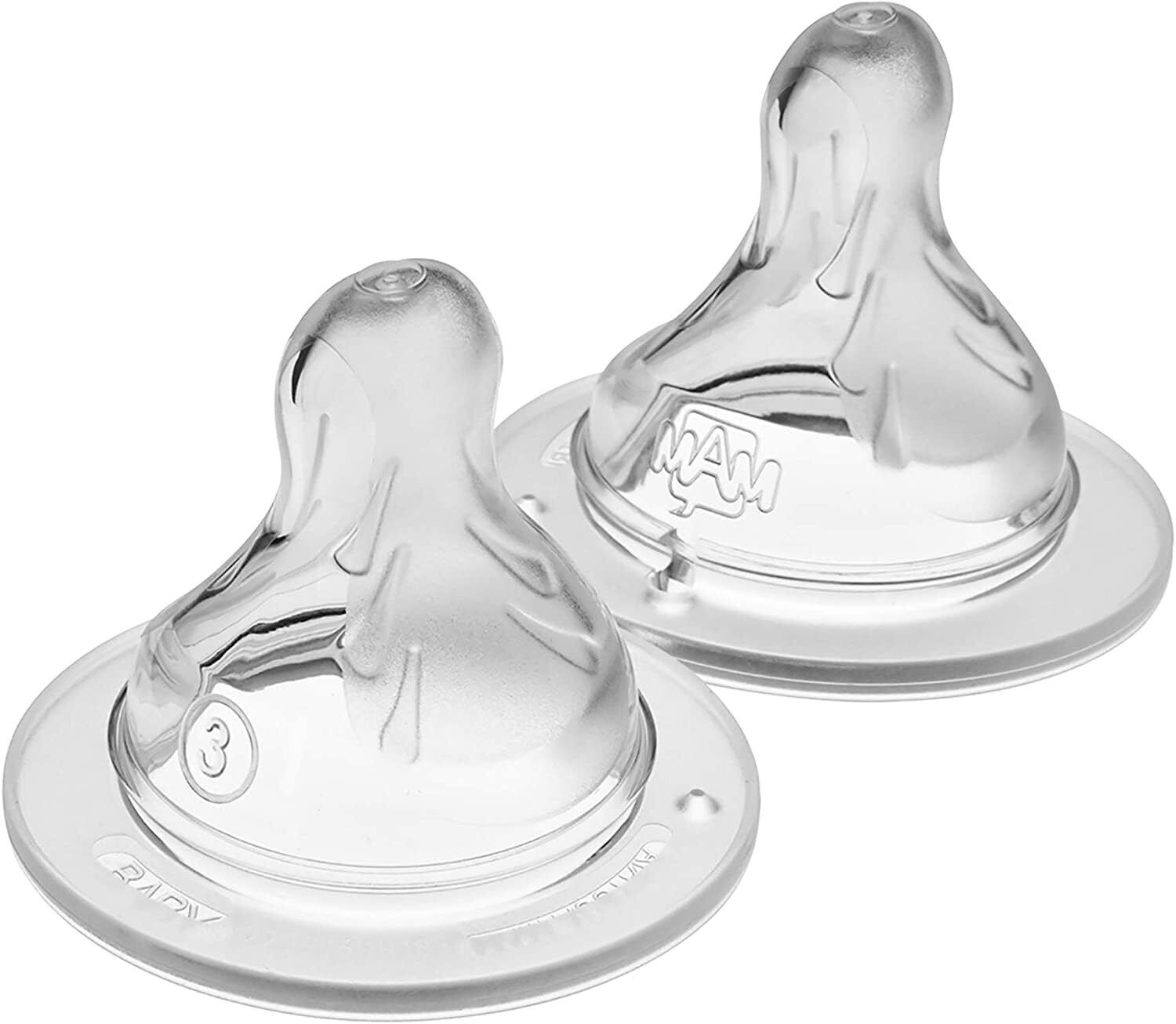 MAM Teats Size 3 | 2 Pack | Fast Flow | Suitable from 4+ Months | Fits All MAM Bottles | Made from SkinSoft Silicone | Baby Accessories