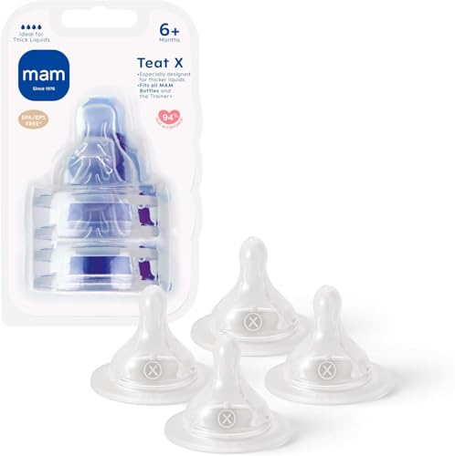 MAM Teats Size X | 4 Pack | Designed for Thicker Liquids | Suitable from 6+ Months | Fits All MAM Bottles | Made with SkinSoft Silicone | Baby Accessories