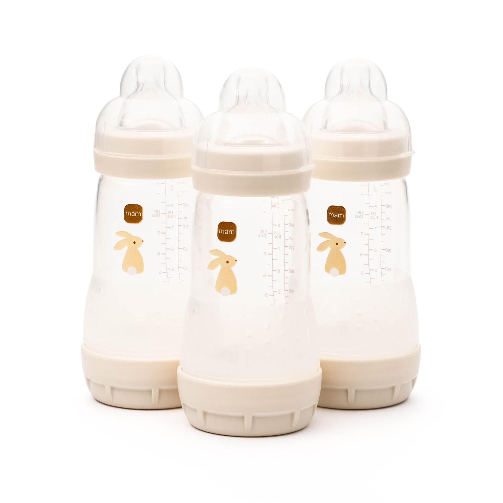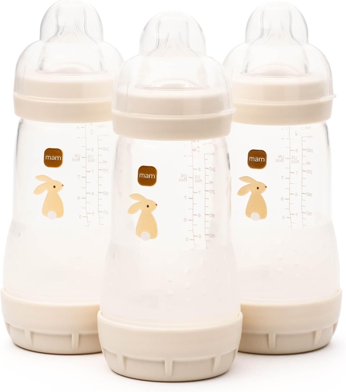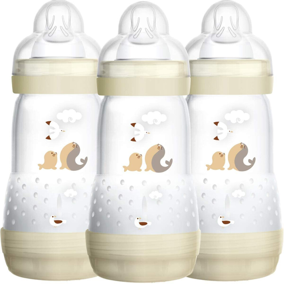 MAM Easy Start Self Sterilising Anti-Colic Bottle Pack of 3 (3 x 260 ml), MAM Baby Bottles with Medium Flow Teats, Essentials for Baby Feeding, Ivory