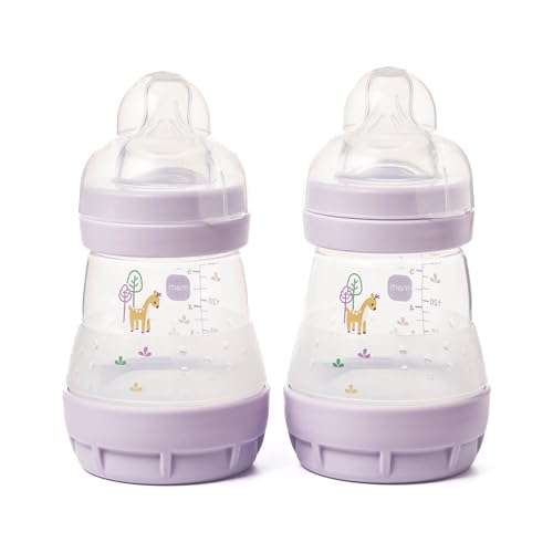 MAM Easy Start Anti-Colic Baby Bottles | 2 Pack (2 x 160ml) | Self-Sterilising Baby Milk Bottle | Slow Flow MAM Teats Size 1 | Newborn Essentials | Pink (Various Designs)