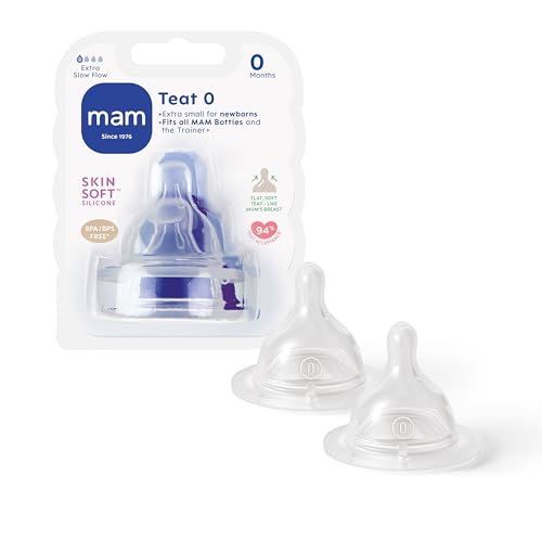 MAM Teats Size 0 | 2 Pack | Extra-Slow Flow | Fits All MAM Bottles | Made from SkinSoft Silicone | Baby Accessories for Newborn