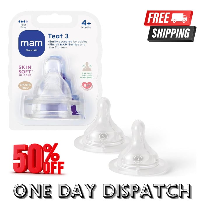 MAM Teats Size 3 2 Pack Fast Flow Suitable from 4 Months Fits All MAM Bottles