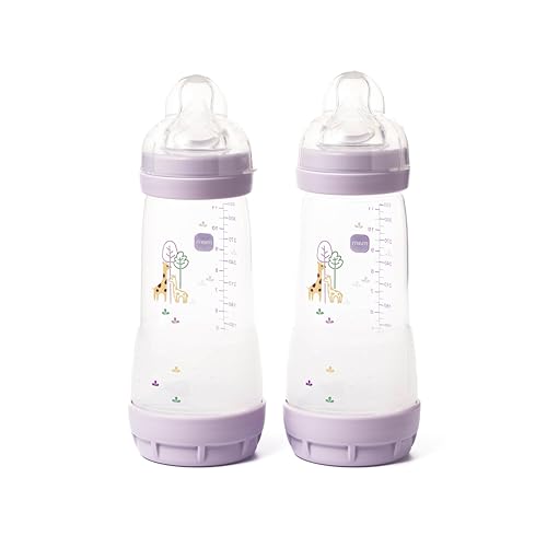 MAM Easy Start Anti-Colic Baby Bottles | 2 Pack (2 x 320ml) | Self-Sterlising | Fast Flow MAM Teats Size 3 | Baby Accessories | Pink (Various Designs)