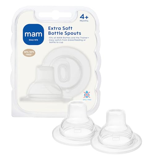 MAM Extra Soft Bottle Spouts | 2 Pack | for Moving from Bottle to Cup | Fits All MAM Bottles | Suitable from 4+ Months | Made with SkinSoft Silicone | Baby Accessories