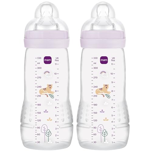 MAM Easy Active Bottles | 2 Pack (2 x 330ml) | Fast Flow MAM Teats Size 3 | Baby Accessories | Lilac (Various Designs)