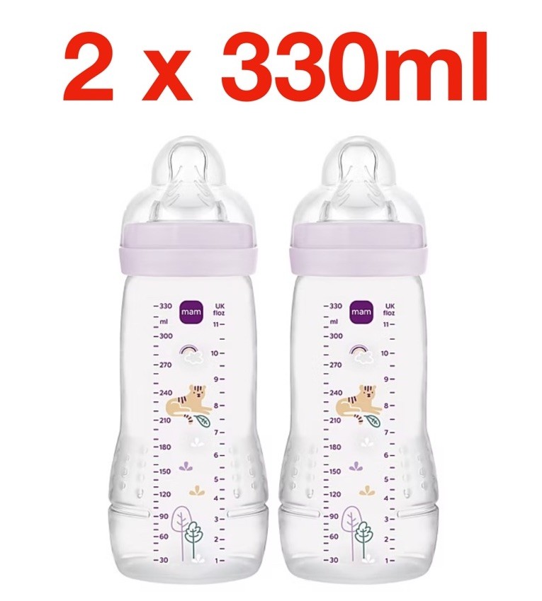 MAM Easy Active 2 x 330ml Baby Bottles SkinSoft Silicone Teat Lilac NEW