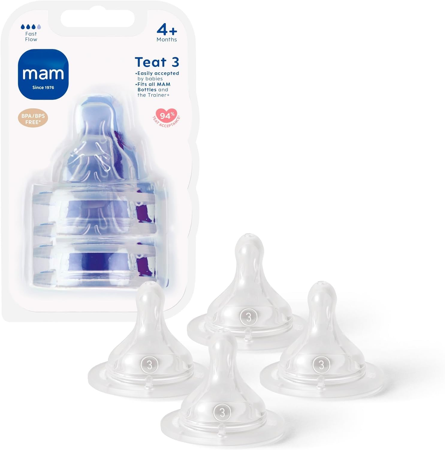 MAM Teats Size 3 | 4 Pack | Fast Flow | Suitable from 4+ Months | Fits 3