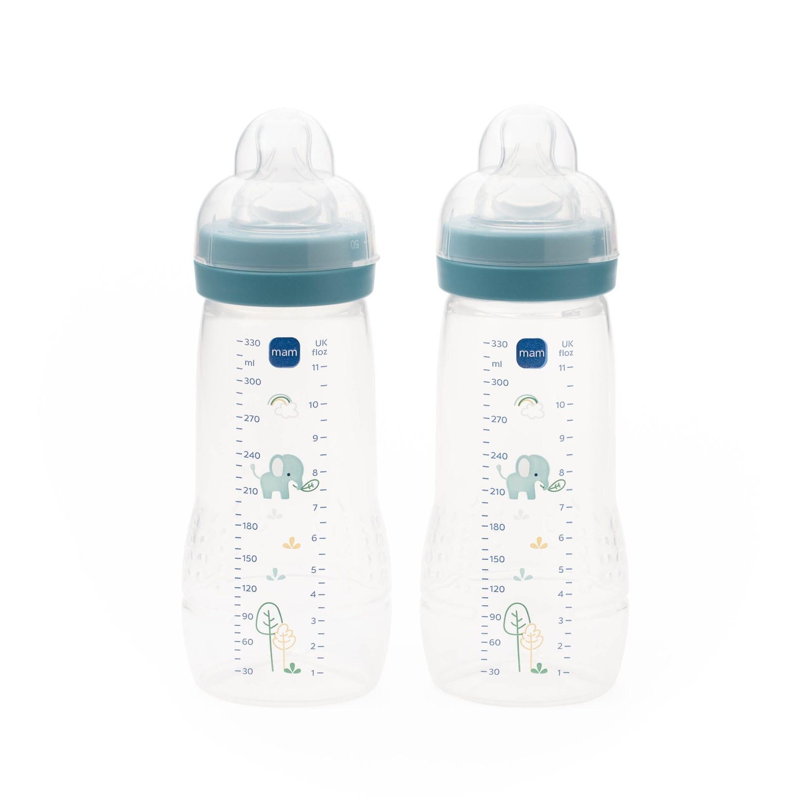 MAM Easy Active Bottles | 2 Pack (2 x 330ml) | Fast Flow MAM Teats Size 4 + |