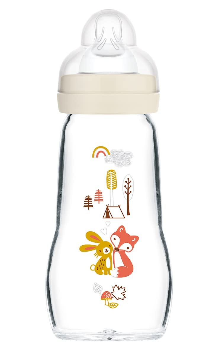 MAM Feel Good Glass Bottle Pack of 1 (1 x 260 ml), MAM Bottle with Medium Flow