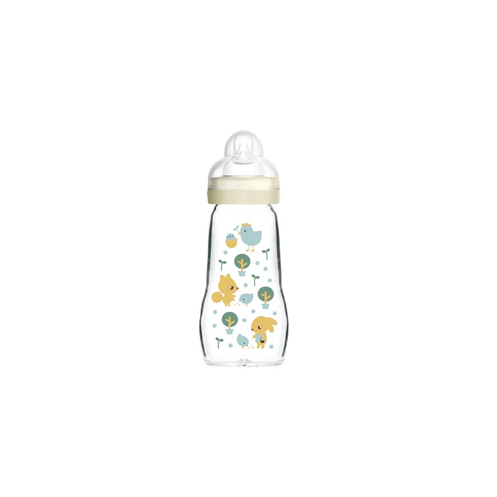 MAM Feel Good Glass Bottle Pack of 1 (1 X 260 Ml), MAM Bottle with Medium Flow MAM Teats Size 2, Newborn Essentials, MAM Baby Bottles 2+ Months, Blue