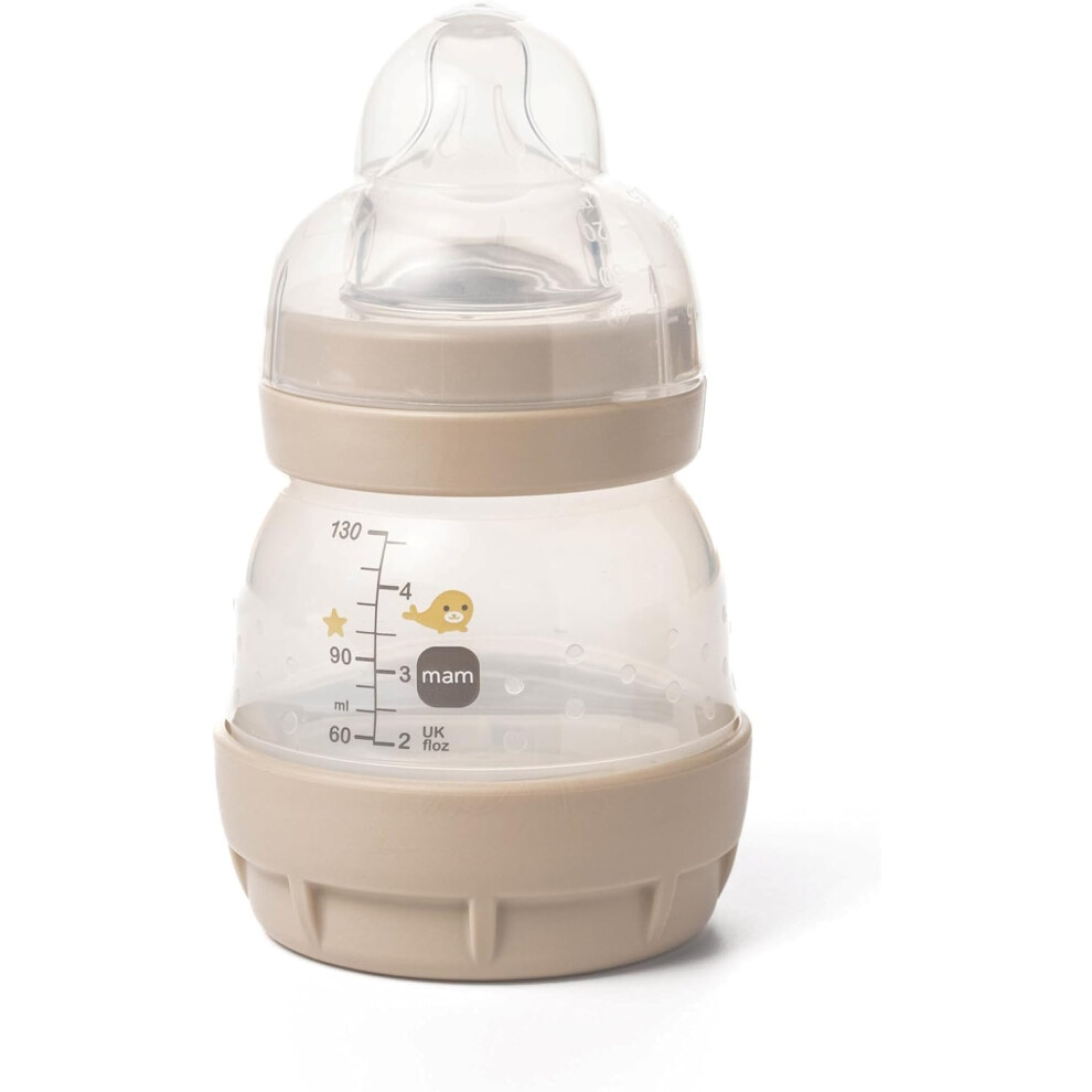 MAM Easy Start Anti-Colic Baby Milk Bottle | Pack of 1 x 130ml | Self-Sterlising | Slow Flow MAM Teats Size 0 | Newborn Essentials | Linen (Various Designs)