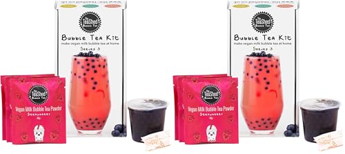 Vegan Milk Bubble Tea Kit Gift Box | 3 Servings | Set includes Strawberry Powder, Blueberry Popping Boba and Paper Straws | By The TeaShed (Pack of 2)