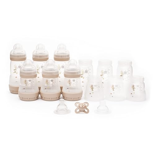 MAM Easy Start Anti-Colic Bottle Starter Set | Includes Components for 6X Bottles & MAM Original Start 0-2 Month Soother | Baby Gift Set of Newborn Essentials | Large (Various Designs)