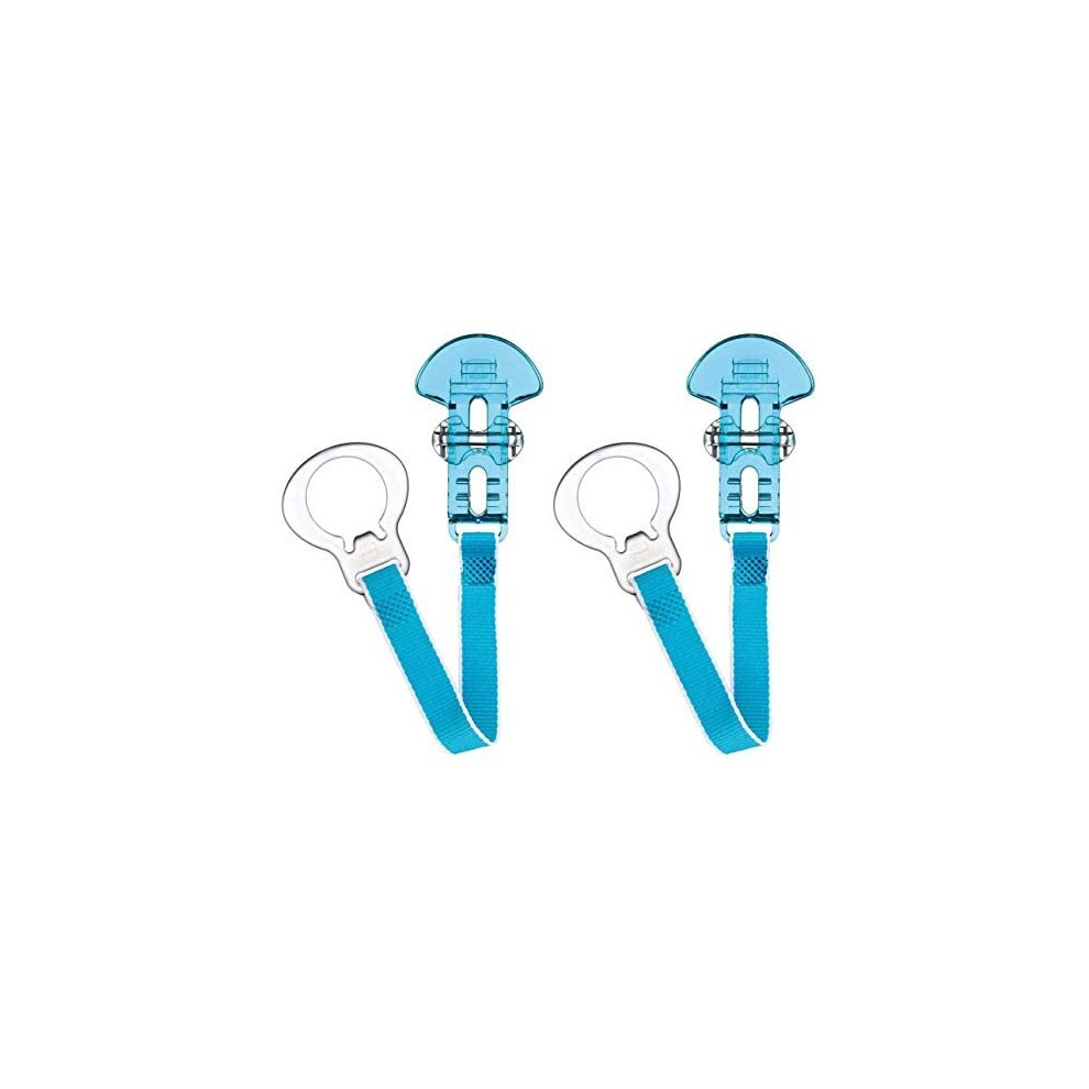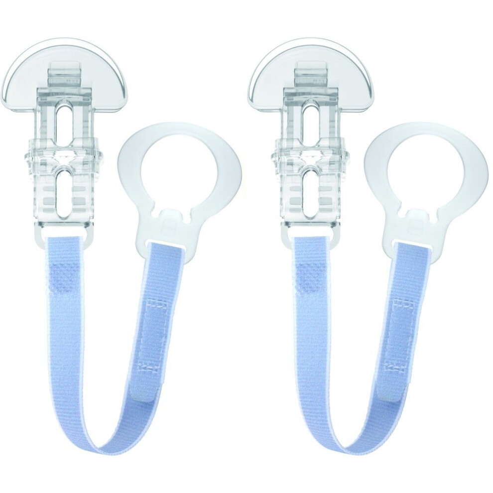 MAM Soother Clips, Pack of 2, Baby Soother Chain Fits All MAM Soothers, Newborn Essentials, Blue with Blue Strap (Soothers Not Included)