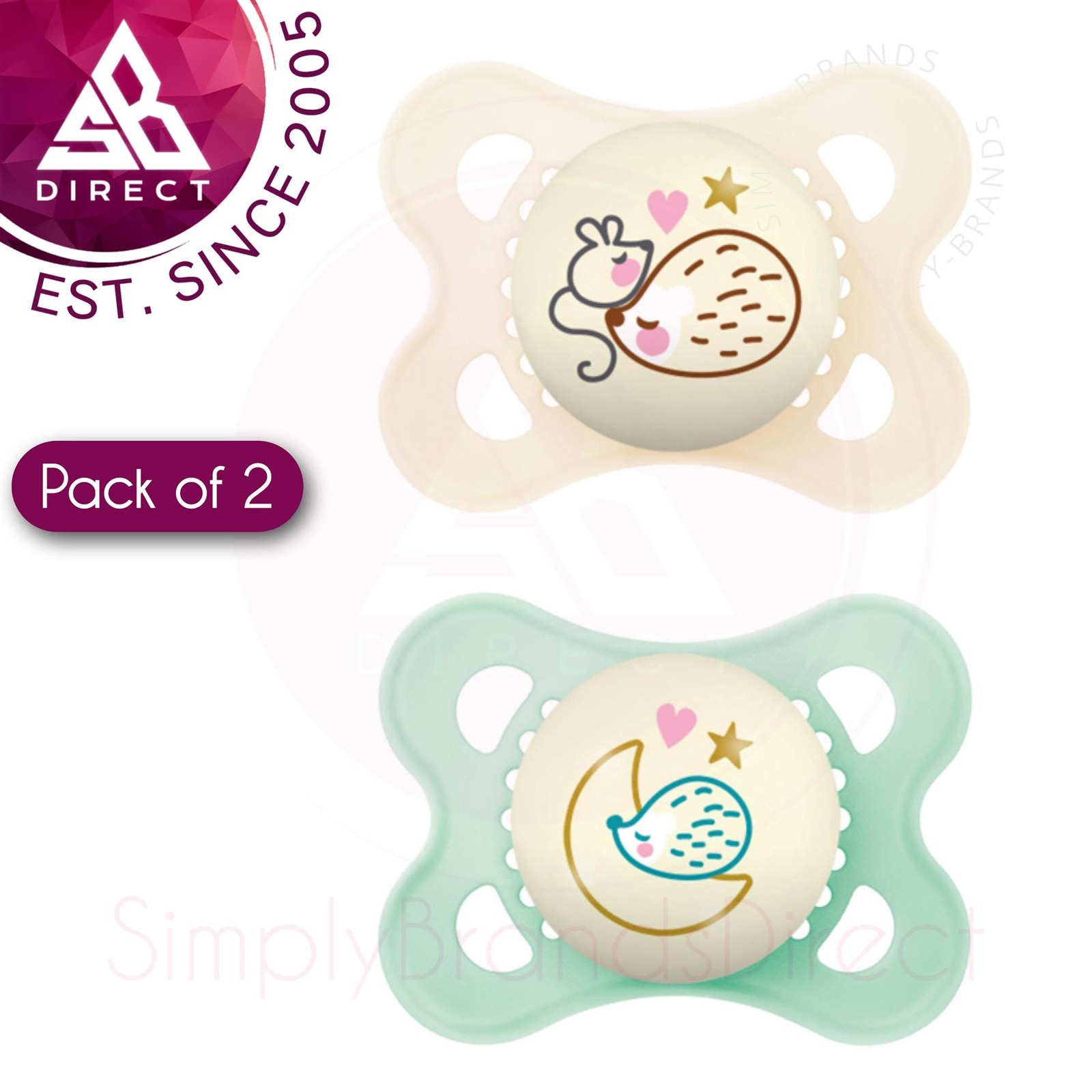 MAM Baby Night Soother│Glow In The Dark│SkinSoft Silicone Teat│2-6m│Pack of 2