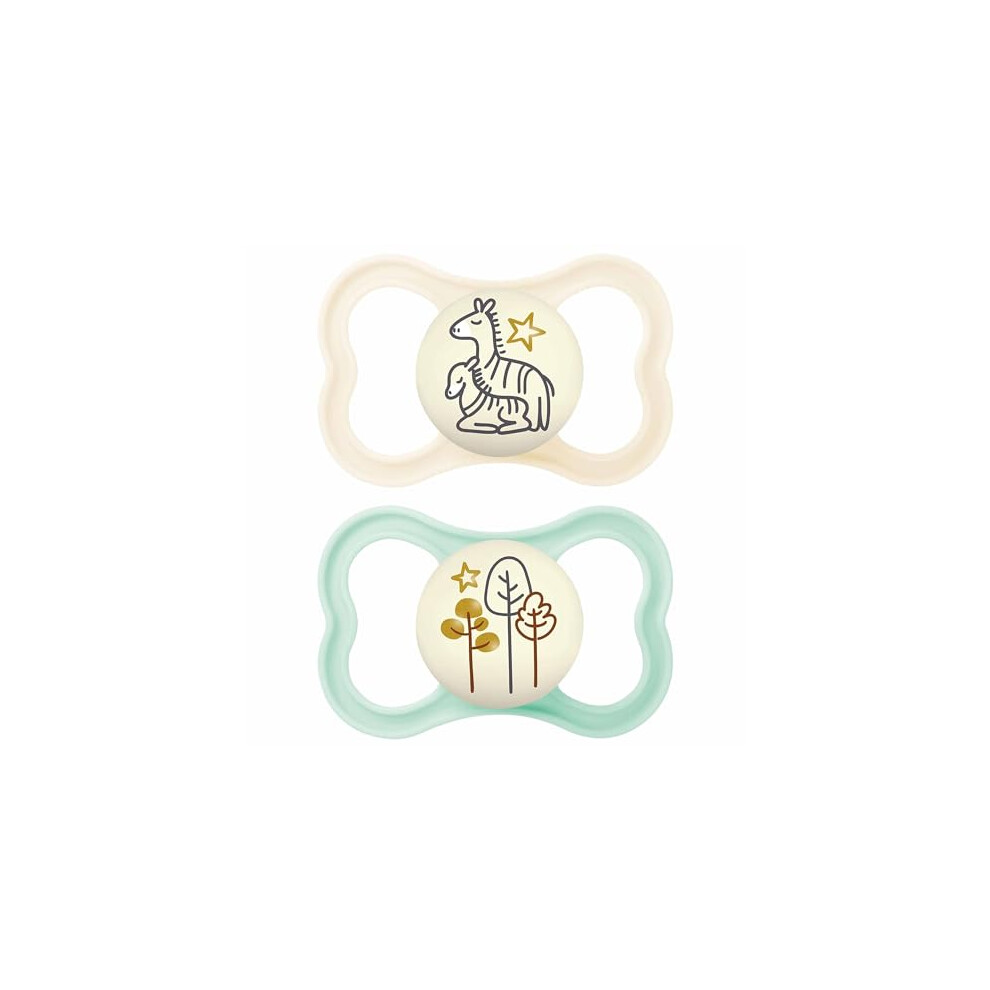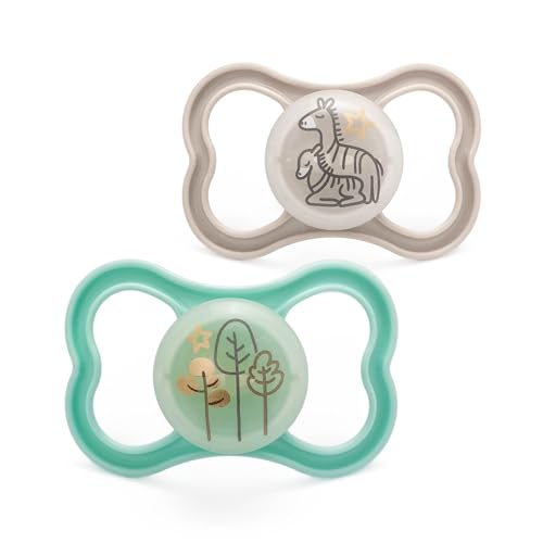 MAM Latex Original Night Soothers | 0-6 Months | Glow in The Dark Dummies | Comes in Dummy Steriliser Case | Baby Accessories for Newborn | Green/Cream (Various Designs)