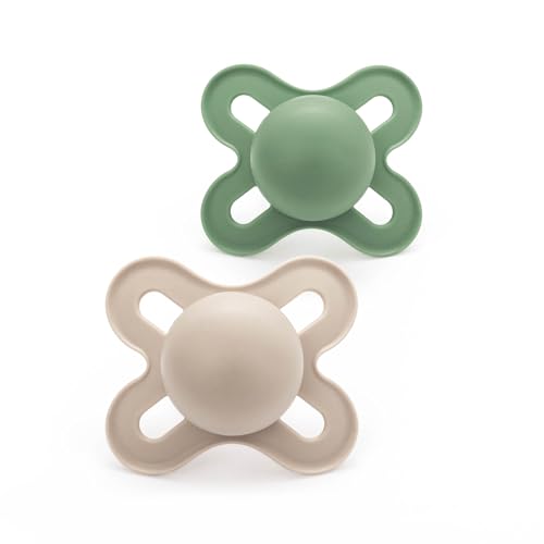 MAM Original Soothers | 2-6 Months | 2 Pack | Comes in Dummy Steriliser Case | Made from Sustainable Materials | Baby Accessories for Newborn | Cream/Green (Plain)