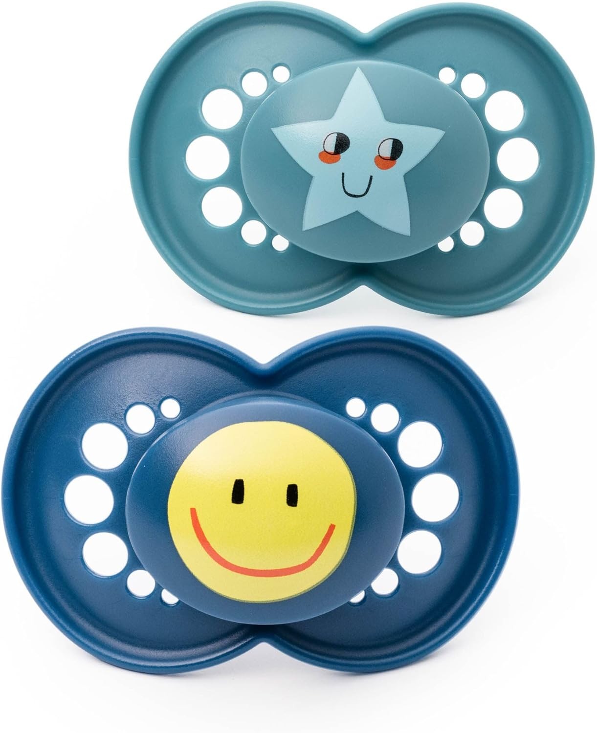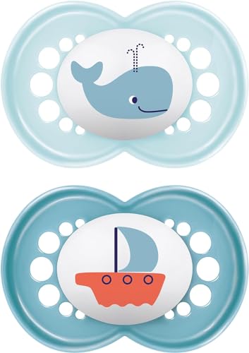 MAM Original Soothers | 18-36 Months | Pack of 2 | Comes in Dummy Steriliser Box | Sustainable Materials | Baby Accessories | Blue (Various Designs)