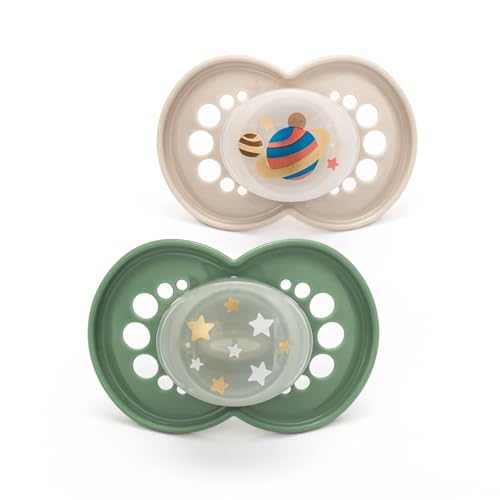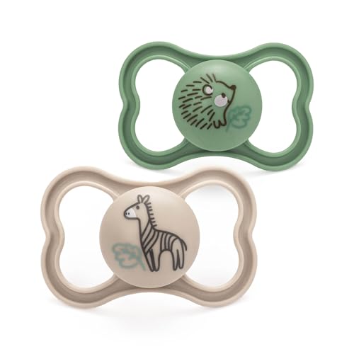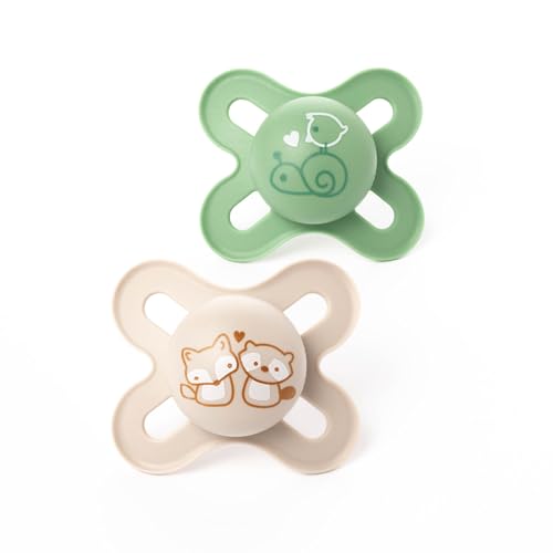 MAM Original Soothers | 0-6 Months | 2 Pack | Comes in Dummy Steriliser Case | Sustainable Materials | Baby Accessories for Newborn | Cream/Green (Various Designs)