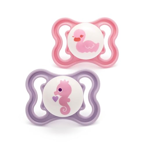 MAM Perfect Soothers | 0-6 Months | 2 Pack | Newborn Dummies | Comes in Dummy Steriliser Case | Sustainable Materials | Baby Accessories for Newborn | Pink (Various Designs)