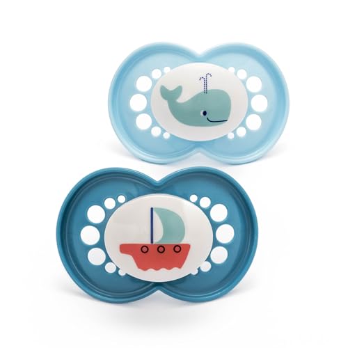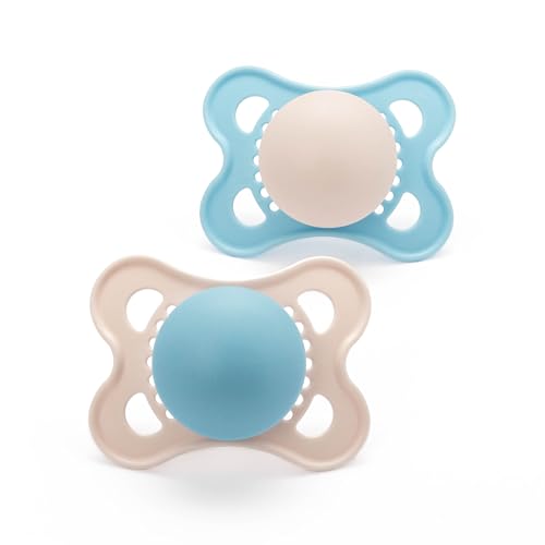 MAM Perfect Soothers | 0-6 Months | 2 Pack | Newborn Dummies | Comes in Dummy Steriliser Case | Sustainable Materials | Baby Accessories for Newborn | Blue (Various Designs)