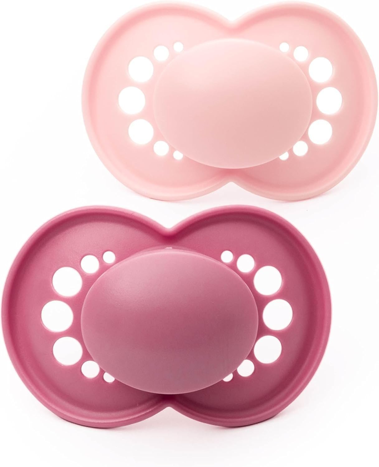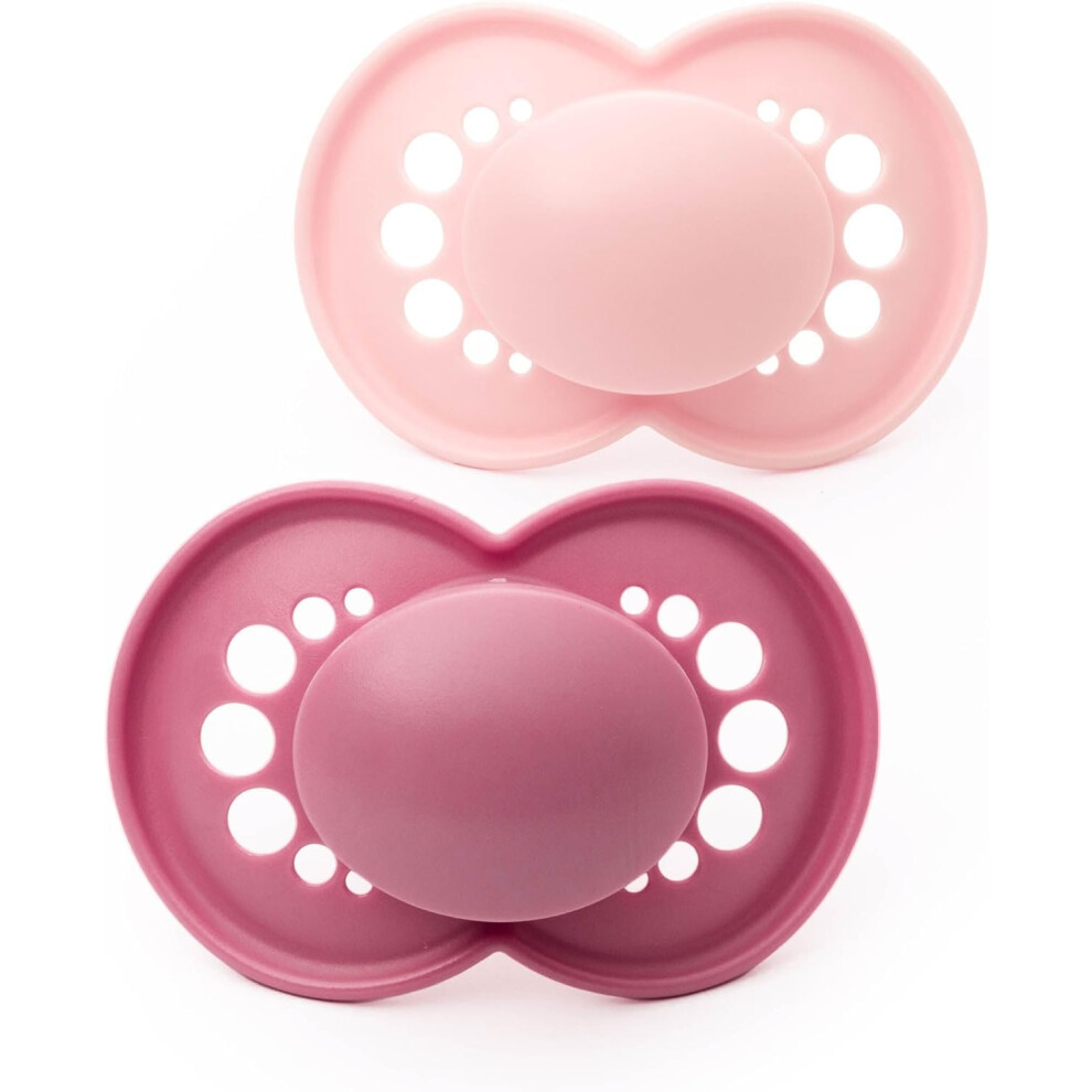 MAM Perfect Soothers | 6-18 Months | 2 Pack | Comes in Dummy Steriliser Case | Sustainable Materials | Baby Accessories | Pink (Various Designs)